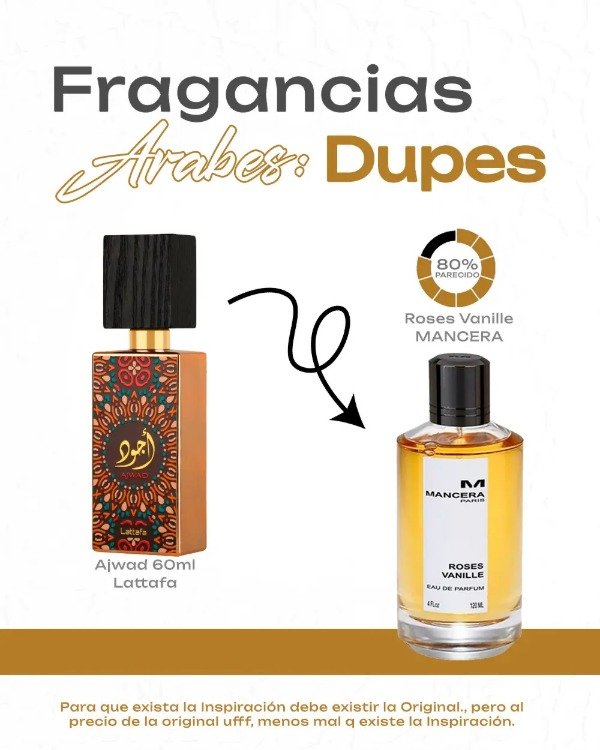 Ajwad de Lattafa Perfumes es una fragancia de la familia olfativa Amaderada Aromática para Hombres y Mujeres. Ajwad se lanzó en 2021. La Nota de Salida es notas afrutadas; las Notas de Corazón son rosa y jazmín; las Notas de Fondo son vainilla, almizcle, ámbar y cedro.